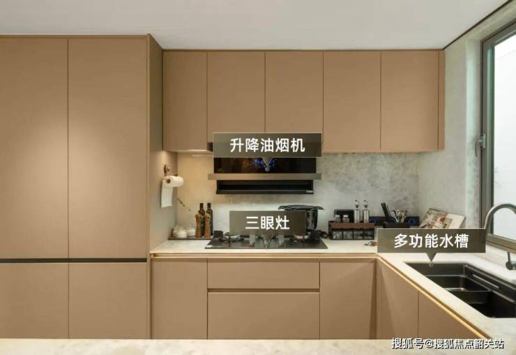 全屋精装品质全面提升:厨房配备了三眼灶、升降油烟机、多功能水槽、蒸烤箱等厨电五件套,满足各种烹饪需求。