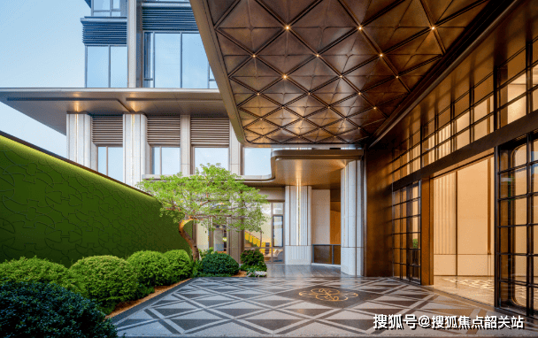 风雨连廊:归家无惧风雨,一边水景山石,一边功能空间;大堂融合海派与岭南风,让归家也是一场艺术的享受。