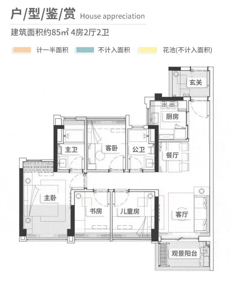 “南向面宽最大化”设计则充分考虑了居住的舒适性。该户型南向面宽达到了12米,充足的阳光和良好的通风条件,让室内始终保持明亮干燥。无论是卧室还是客厅,都能享受到温暖的阳光和清新的空气,为居民打造了一个健康宜居的生活环境。
