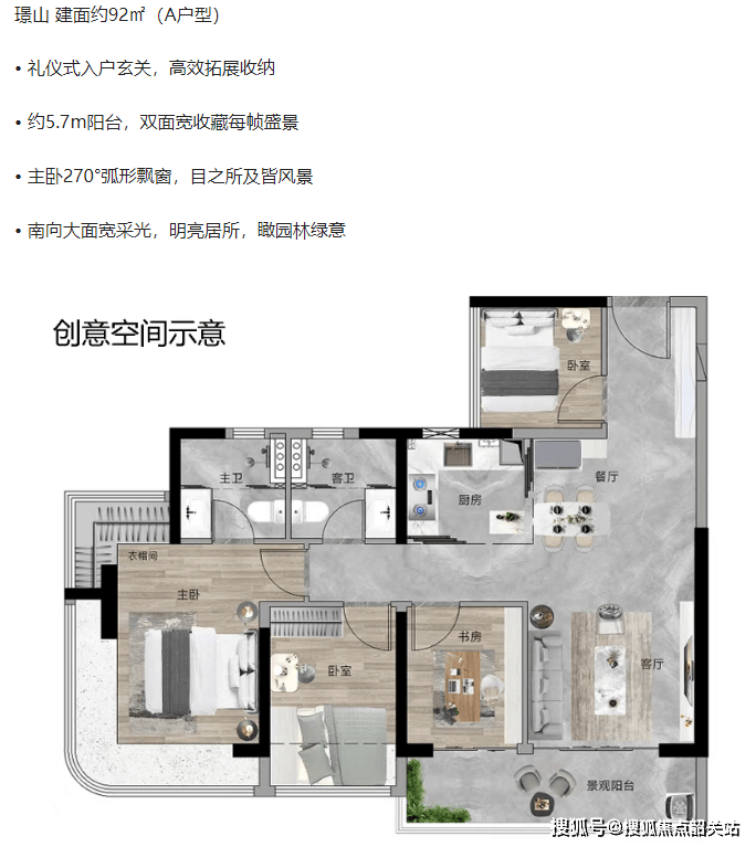 能建·天河麓誉府提供从80㎡至125㎡不等的多种户型选择,包括92㎡的A户型和100㎡的B户型。每个户型均设计了南向大面宽采光,主卧配备270°弧形飘窗,不仅保证了充足的自然光线,还提供了极佳的视野享受。其中,A户型拥有约5.7m阳台,而B户型则配置了约5.9m的百变宽厅,满足不同家庭结构的需求。