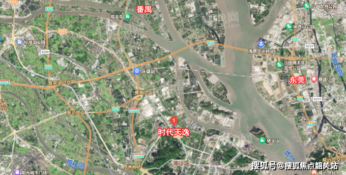 时代天逸在南沙的发展中轴上,位于南沙庆盛枢纽区黄阁地铁站旁,楼盘位于地铁4号线黄阁地铁口A出口马路对面的位置,距离仅150米,出门即是地铁说的就是时代天逸;项目位置刚好在番禺、南沙和东莞三地接壤的地方,隔着狮子洋眺望东莞,是最靠近市中心和莞深港的南沙地铁大盘。