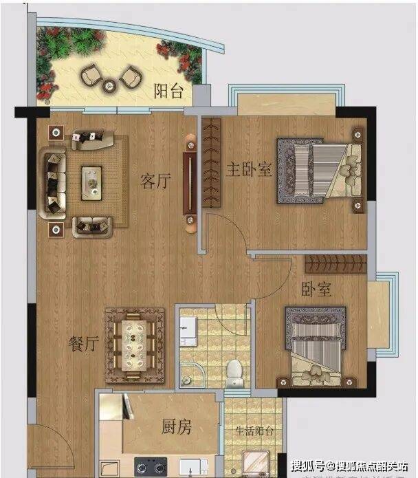 以建面约70平方米的两房为例,其客厅开间约3.8米,L型厨房操作台总长约3.2米,符合两人协作的基本尺度。该户型最大亮点在于“2+1”灵活空间设计——次卧墙体采用非承重结构,可改造为书房或儿童房,实现两房向三房的功能切换。而建面103平方米的三房户型,则通过三开间朝南(客厅+主卧+次卧)实现全天候自然采光,主卧配置270°转角窗,视野可覆盖约500米宽的珠江江面。多数主力户型采用双阳台设计,生活阳台与景观阳台分离,提升晾晒与观景的独立性。