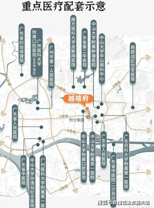 周边3公里内覆盖广州医科大学附属第一医院、中山大学附属第一医院、中山眼科中心、肿瘤医院等多家三甲及专科医院,健康保障坚实。