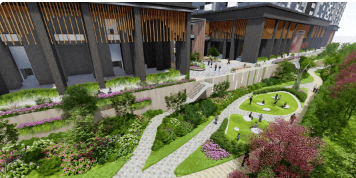 项目在设计上深度融入海绵城市创新环保理念,荣获国际 LEED 金级认证以及绿色建筑评价至高级别绿建三星。通过屋顶、平台与城市花园绿化的巧妙结合,实现有效排水、蓄水及储水,再生利用雨水资源,缓解城市内涝压力,为业主营造绿色、环保、可持续的居住环境。