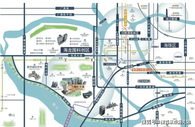 虽然项目不直接毗邻地铁站,但其交通通达性仍具显著优势。项目门口300米即为海中公交总站,多条线路直达广佛线菊树站、1号线西塱站,接驳龙溪站仅需两站公交。1号线贯穿荔湾、越秀、天河等核心城区,通勤效率有保障。