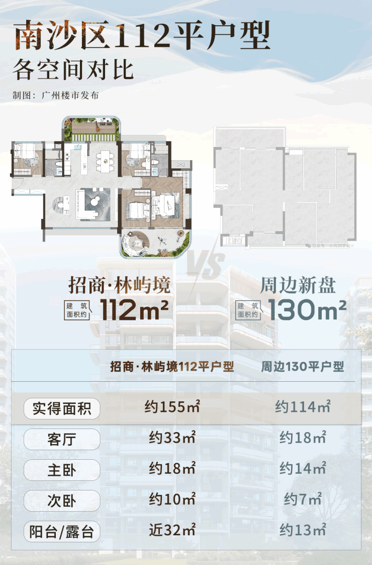 项目拿地时赶上了新规红利,后来政策收紧,阳台率普遍收紧至20%,而招商林屿境“25%阳台率+40%空中花园”的组合,几乎成了绝唱。