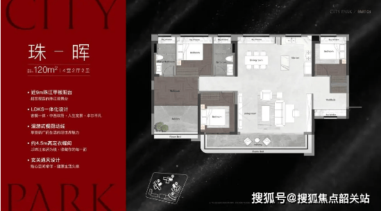 项目在售户型为建面约 120-140㎡四房,主打改善需求,使用率高达 96-100%,空间利用率出色。户型设计注重观景体验,通过超宽阳台、L 型主卧转角飘窗、客厅预留观景飘窗等设计,极大放大观江面;且实现户户朝南,搭配南向望江优势,采光、通风与景观视野俱佳。加推的 3 栋位于项目 C 位,25 层高、两梯三户设计,仅 120㎡和 140㎡两种户型,居住私密性与舒适度更高。