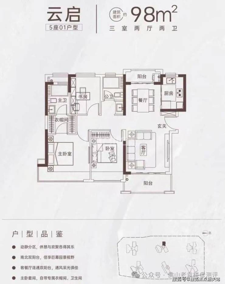 ### (二)98㎡三房两厅两卫(刚需改善首选,双阳台通透户型)