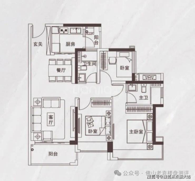 主卧采用套房设计,配备独立卫浴与全景飘窗,保障居住私密性与舒适度,全景飘窗可欣赏社区园林或江景风光;两个次卧空间均匀,可灵活改造为儿童房、书房或储物间,满足家庭多元需求;厨房采用L型设计,操作空间充足,动线流畅,适配日常烹饪需求;卫生间干湿分离,避免潮湿异味,提升使用体验。该户型总价门槛友好,性价比极高,是广佛刚需群体上车禅城核心江景房的优选。