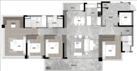 约105㎡四房两卫户型,采用南北对流设计,空气流通性优异,室内常年保持清新通透;主卧配备U型衣帽间,收纳空间充足,满足高端居住需求,彰显品质生活;四房空间规划合理,可满足二胎家庭、三代同堂等多类型家庭居住需求,空间利用率优异;户型南向采光,日照充足,居住舒适度拉满,兼顾实用性与改善属性。