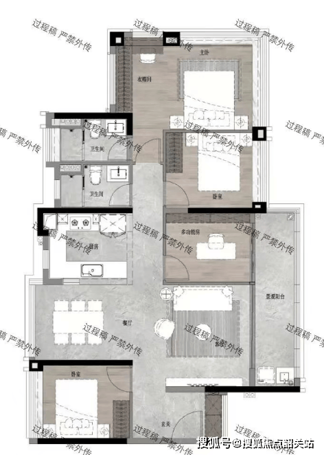 105平方米四房两厅两卫:户型方正,南北通透,适合改善型家庭。