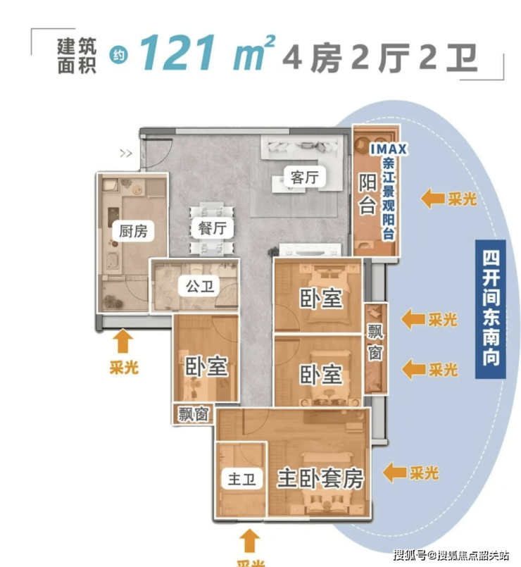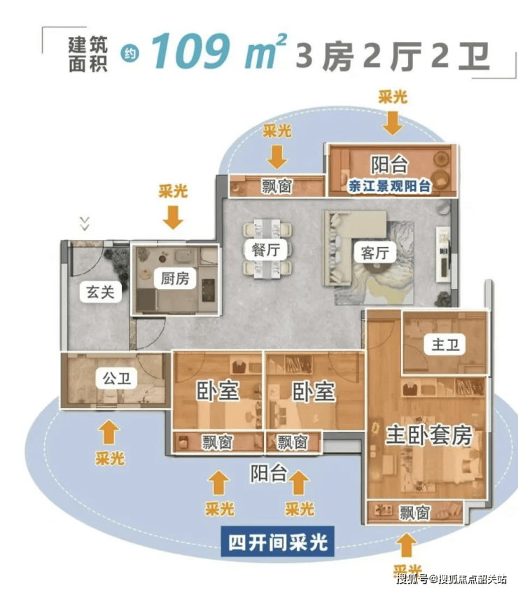 得房率 85%:同样 100㎡,凯粤湾多 7㎡,相当于多一个儿童房、一个书房、一个大阳台,二胎家庭、三代同堂,空间完全够用,不用挤、不用凑;