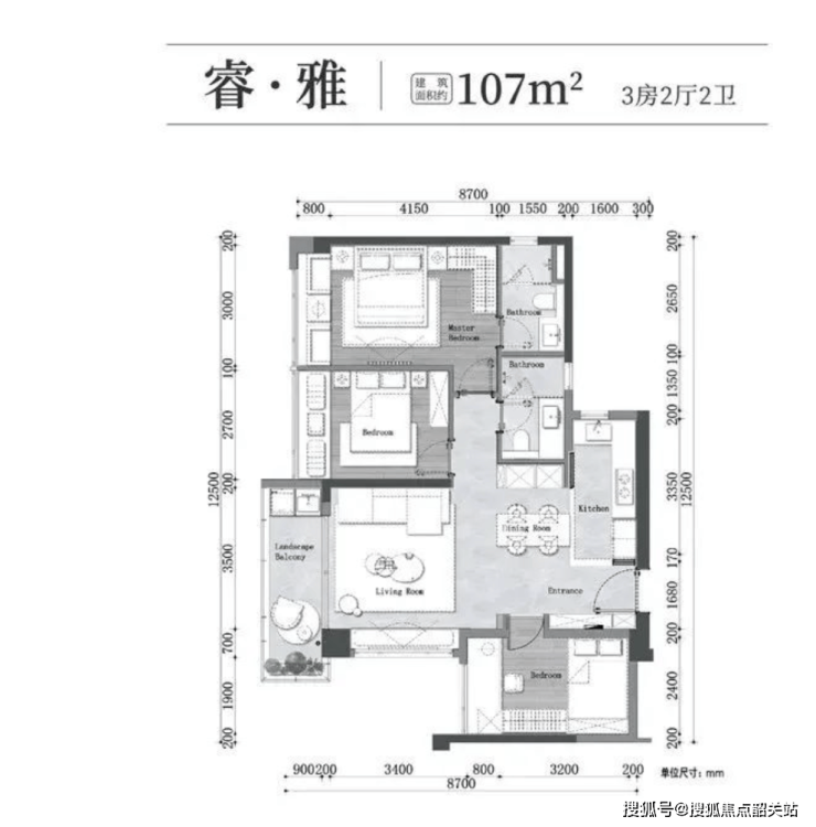 在有限的体量内,瑧樾府将产品空间价值做到极致。住宅共划分为107至180平方米多个面积段,包含三房两厅两卫至四房三卫等不同布局,全面满足都市中产及高净值家庭改善性居住需求。其中主打107平方米、128平方米、141平方米、175平方米及180平方米五种户型,各具特色。