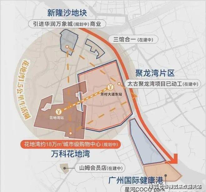 瑧园位于花地湾商务组团,距离白鹅潭、聚龙湾双太古都非常近。白鹅潭作为目前整个广州规划最好、最有前景和想象空间的地方,其发展潜力巨大。花地湾片区基本由万科统一开发,结合白鹅潭-花地湾-聚龙组团的板块张力,于半径约2公里内构建珠江西岸CAZ(中央活动区)黄金三极,打造“产、商、住”一体的新城市中心,成为国家战略支点,辐射湾区三大都市圈。花地湾占据白鹅潭世界商圈的核心位置。