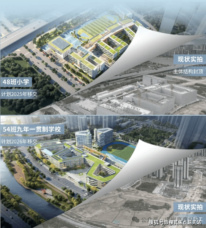 还有不断刷新进度的一所48班小学、一所54班九年制学校(在建,分别预计于2025、2026开学,具体须以教育局公布为准),附近还规划有两块中小学用地,未来更有悠闲好去处的滨海观景带。