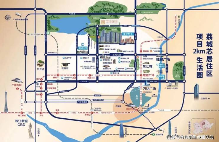 项目三横两纵交通优势:坐拥广州地铁21号线,地铁16号线(规划),接驳 5大高速(增天高速、广河高速、广州北三环高速、从莞深高速、济广高速)与3大快速路(荔新大道、广汕公路、广汕公路北绕线),日常自驾出行到广州市中心以及深圳、惠州、东莞等地都非常方便,直接一路高速畅行。同时广汕北绕线全线开通车后,可接驳广汕路和荔新公路两大主干道,项目无需拥堵即可快速到达荔城旧区。