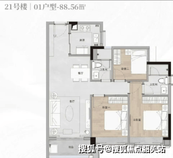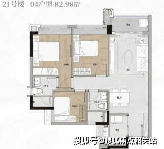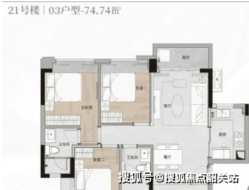 项目主推75至106平方米小高层住宅,全系为三至四房设计,适配不同家庭结构需求。75平方米户型为3房2卫格局,推窗即可欣赏园林景致,紧凑布局让空间利用率最大化。83平方米3房2卫户型,阳台朝向园林,保证室内采光与通风的同时,将自然景观引入室内。
