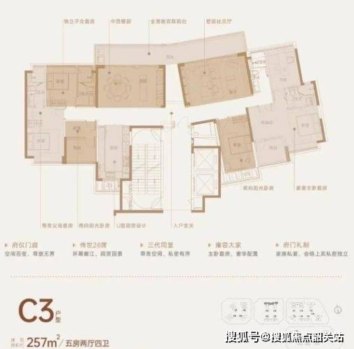 项目户型涵盖103-257㎡,动静分区合理,主卧、次卧及生活区布局科学。大平层设计包括超6米宽阳台、生活阳台及270°景观主卧套房,兼顾采光、通风与景观。部分户型南北通透,可同时享受江景及园林景观。户型方正实用,空间利用率高,满足家庭生活需求。