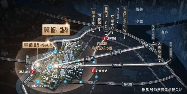诚汇新都·榕诚湾位于广州荔湾白鹅潭CBD核心区,地处茶滘旧改板块,具体位置为荔湾花地河以西,广州香料厂以南地段,东邻汾水花园和真光中学,西侧为芳村花地河,地理位置优越,坐拥江景资源与板块发展红利。交通配套方面,目前项目距离最近的地铁1号线花地湾站步行约1.9公里,步行耗时约22分钟,不建议步行出行;项目楼下设有茶滘总站,106路公交3站即可直达芳村地铁站,接驳地铁1号线,可快速通达越秀、天河等核心区域,对于在越秀上班的购房者十分友好。此外,项目距离远期规划的地铁25号线汾水站约600米,未来地铁开通后,可1站直达花地湾站,大幅缩短通行时间,提升出行便捷度。自驾方面,项目临近茶滘路、芳村大道等城市主干道,可快速接入内环、环城高速,通达广州各区域,但高峰时段可能出现拥堵情况。整体来看,当前交通以公交+自驾接驳地铁为主,未来地铁规划落地后,交通便捷度将大幅提升。