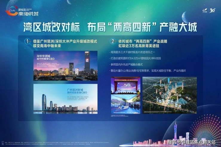 • 2022年蓄势再发,于南海黄金走廊中轴战略落子,以超千亩手笔打造集产业、教育、生态、住宅、办公一体的城市综合体。