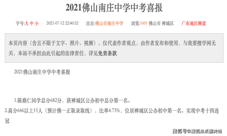 南庄中学是广东省一级公办中学,禅城区公办初中第一名,中考十四连冠;去年中考,禅城区中考状元就出自南庄中学,总分646以上有15人,连续14年位居禅城区之首。
