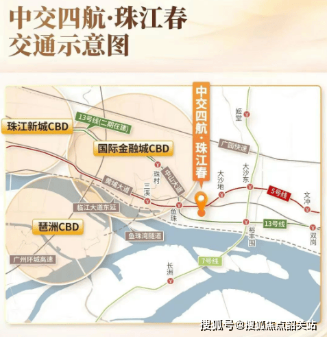 珠江春地处5号线鱼珠站与大沙地站之间,距离地铁站仅几百米,步行即可到达。项目周边还有即将开通的13号线二期和临江大道东延段等交通设施,预计将在2025年完工,进一步提升区域的通达性。此外,珠江春距离珠江仅有200-300米的距离,提供了极佳的江景视野。