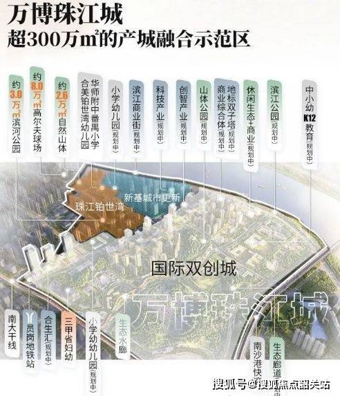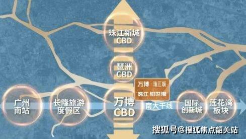 珠江万博城地处万博CBD唯一的滨江带上,拥有“CBD城市顶尖资源+景观顶尖资源”的双重优势。作为广州城市中轴与南大干线经济带的交汇点,该项目不仅享受到了珠江新城的繁华,还受益于长隆世界级文旅IP的辐射效应。此外,珠江新城和万博CBD之间形成了南北双CBD格局,使得珠江万博城成为连接这两大地标的桥梁。