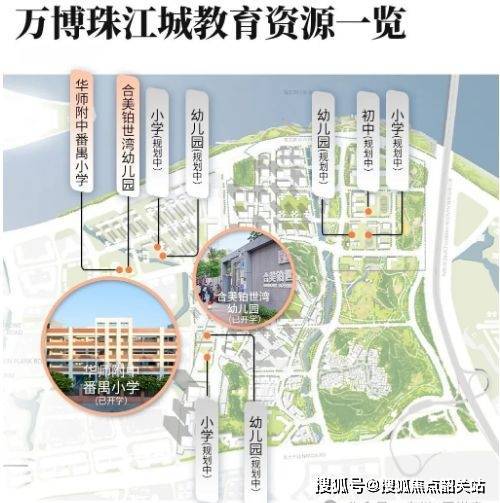 珠江万博城内共规划了9所中小幼学校,其中包括已开学的24班华师附中番禺小学及12班公立合美铂世湾幼儿园。虽然目前初中教育资源尚待进一步完善,但珠江万博城正在配建初中,并且附近有一个私立的星执中学(原名执信中学),未来有望提供更优质的教育选择。