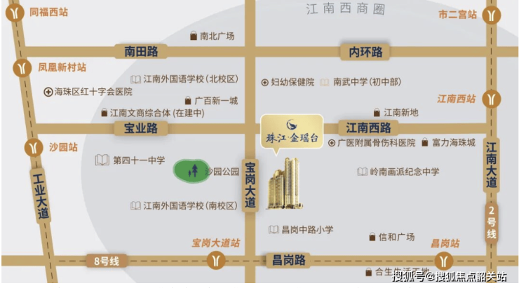 珠江·金瑶台交通条件非常便利。项目距离地铁8号线宝岗大道站约500米,步行即可到达,同时距离2号线江南西站约800米,可快速接驳广州南站等城市枢纽。周边道路网络发达,宝岗大道连接江南大道和工业大道,轻松通达天河、越秀及珠江新城。自驾至珠江新城约18分钟,通达全城核心商圈便捷高效。公交线路众多,出行选择灵活,适合上班族及经常出行的家庭。交通便利性与江南西成熟配套相结合,使居民在享受市中心生活便利的同时,能够拥有相对安静、宜居的居住环境。珠江·金瑶台 欢迎致电售楼处电话400-655-7087(网站官方认证)