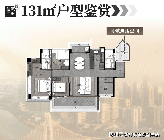 户型设计创新:“魔方空间” 与 LDKG 一体化设计,空间利用率高,123㎡实现 “4+1 房”,131㎡注重私密度与舒适度,精准匹配刚改改善需求;