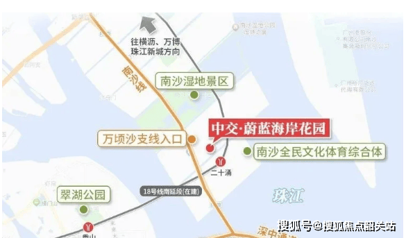 A6:项目交通十分便捷,处于大湾区交通枢纽核心节点。距离已通车的深中通道南沙线收费站约1公里,驱车半小时可达深圳前海;距离在建的18号线南延线(南中城际)二十涌站约500米,步行即可到达,该线路预计2027年西线通车、2030年东线通车;距离广澳高速、京珠高速等主干道较近,驱车1小时可达广州核心城区,2小时辐射大湾区各大城市。