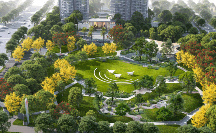 在公共空间方面,中建·白云之星注入了丰富的艺术基因与人文肌理,将精工造诣推向美学新境。例如,约2.6万方黄边艺术公园,通过莫奈艺术元素的三维转译,构筑了一个兼具空间层次感、五感体验感、艺术沉浸感的多维景观矩阵。