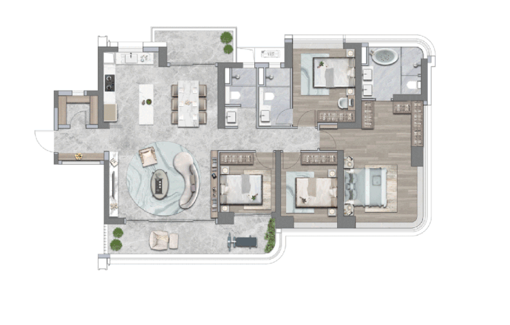226㎡户型:为真正能穿越家庭生命周期的户型设计,提供充足的空间分配逻辑,满足不同阶段的生活需求。