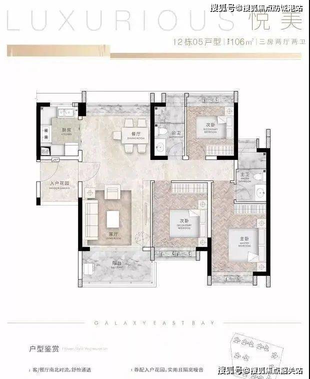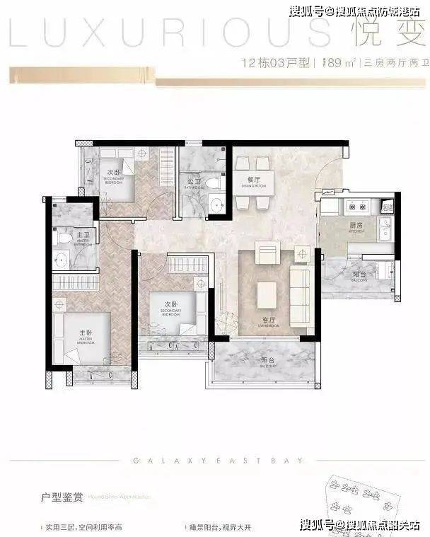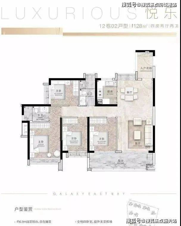 南沙星河东悦湾哪个户型最好?:建面约128㎡四房户型,南北通透,得房率85%,适合改善型家庭;