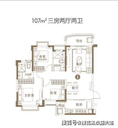 建面约107㎡主流舒适户型,作为片区明星主力产品,空间尺度均衡适中,整体采用全明通透格局,室内无暗间,南北空气流畅对流,日常采光充足,居住干爽舒适。户型动静分区科学规划,休憩区域与活动区域合理分割,有效保障居家私密性与安静度,规避日常动线干扰。阔景阳台联动客厅,拓宽室内空间视野,直面社区园林景观,部分楼栋可远眺一线海景,日常观景、晾晒、园艺、休闲多重功能兼备。客餐厅一体化开放式布局,拉伸公共活动空间尺度,家庭聚餐、日常休闲、亲友聚会更显开阔从容。卧室空间尺度合理,飘窗拓展空间加持,提升空间利用率与居住舒适度,整体设计兼顾实用性与舒适度,低门槛实现大三房舒适居住体验,性价比优势突出,是广深通勤刚需、滨海养老改善家庭的优选户型。