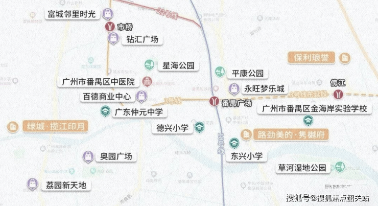 商业配套成熟,3公里内汇聚永旺梦乐城、奥园广场、钻汇广场等大型商圈,餐饮、购物、娱乐一应俱全,满足日常消费。医疗方面,周边有市桥医院(含临终关怀科室)、番禺区第三人民医院等,提供全龄段医疗保障。生态资源得天独厚,拥**一江三园**(市桥水道、莲湖湿地公园、大夫山森林公园、滴水岩森林公园),推窗即揽一线江景,社区内9大主题园林、8万㎡绿化面积,构成天然氧吧。内部规划全龄活动区,含未来梦想主题儿童空间、U-YOUNG青年社群、红叶主题长者活动区,适配全家庭生活场景。