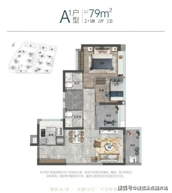 其中,79㎡户型堪称刚需户型的标杆之作,在有限的面积内,实现了三房两卫的设计,充分利用每一寸空间,无浪费面积。户型南北通透,采光通风极佳,客厅连接阳台,延伸了室内空间,让客厅更加宽敞明亮;主卧带独立卫生间,保障了业主的私密性;两个次卧大小适中,可作为儿童房或书房,满足家庭的不同需求;厨房采用L型设计,操作空间充足,方便业主烹饪美食。对于刚需三口之家而言,79㎡三房两卫户型,既能满足日常居住需求,又不会带来太大的经济压力,是刚需置业的首选。