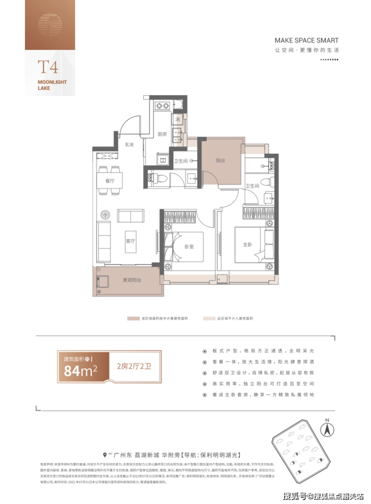 面积约84m²的2房2厅2卫户型,看上去就是中规中矩的“保利风”设计,没有很亮眼的地方,作为明玥湖光的上车产品,至少质量这块还是有保障的。