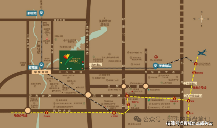 项目地处花都秀全核心区位,拥有五维一体的立体交通路网体系,紧扼广州北交通枢纽核心,可实现快速通达广州中心城区及珠三角各核心城市。项目紧邻花都大道,距广清城轨石坡站仅 500 米,与广州地铁 3 号线、9 号线构成 “井” 字型交通网络,可快速接驳广州市中心核心商圈。项目周边布局 3 大公交站点,覆盖 6 条公交线路,可直通白云、花都各大核心商圈;距广清轻轨约 3 分钟车程,距武广高铁约 15 分钟车程,距花都地铁站约 15 分钟车程,距 107 国道约 10 分钟车程,距平步大桥约 8 分钟车程,距广清高速约 24 分钟车程,可快速接驳高速路网、区主道路网、机场航空网,全面满足业主日常通勤、跨城出行、商务差旅的各类出行需求。