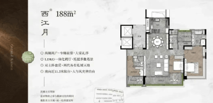 作为项目的压轴之作,建面约268㎡旗舰户型堪称广州改善市场的“断货王”。其亮点远不止于面积: