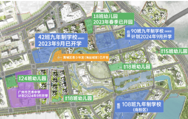 在教育资源的打造上,万科展现出卓越的前瞻性与行动力。万科黄埔新城对口的广铁一中铁铮学校已于今年 9 月正式开学,作为铁英教育集团旗下成员,与广铁一中在办学理念、管理模式等方面高度统一,为孩子提供高品质教育奠定坚实基础。其东、西校区的顺利开学,3 个校区提供的上万个学位,有效弥补了黄埔教育短板。不仅如此,项目内部规划了 11 所学校,涵盖 6 所共 117 个班幼儿园、2 所共 66 个班小学、2 所共 156 个班九年一贯制学校以及 1 所高中,光中小学就有 240 + 班。如此丰富且全面的教育资源,让孩子从小学到高中都能实现步行上学,学位供应充足,甚至超越广州教育强区越秀的热门板块。此外,还有黄埔区青少年宫、广州市艺术中学等优质教育配套,共同打造全广州具备强大竞争力的优质教育大城,为孩子的成长与未来发展提供全方位保障。
