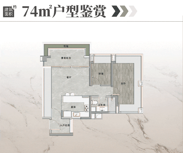 主力在售的74㎡三房原本是两房格局,通过合理改造实现三开间朝南,主卧、次卧和客厅均能采光;85㎡户型则带入户花园,南向面宽超常规,客厅与次卧共享近6米景观阳台。值得一提的是,115㎡四房做到四开间朝南,南向采光面长达21米,搭配花池赠送空间,实用性远超同面积段产品。所有户型均采用新规设计,无传统飘窗结构,得房率明显提升。