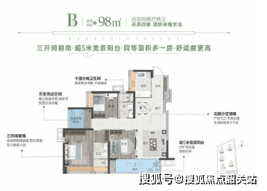 98平方米户型被誉为区域内唯一的97平方米四房户型,是精英阶层置业的首选。该户型户户朝南,约5米宽的大阳台设计,通风采光极佳,超15平方米的奢阔主卧套房,私密尊享,超高赠送使得户型使用率超9成。四房设计不仅满足了多代同堂的居住需求,还提供了灵活的空间布局,可根据家庭需要进行功能分区,如设置儿童房、书房、客房等,极大提升了居住的舒适度与实用性。