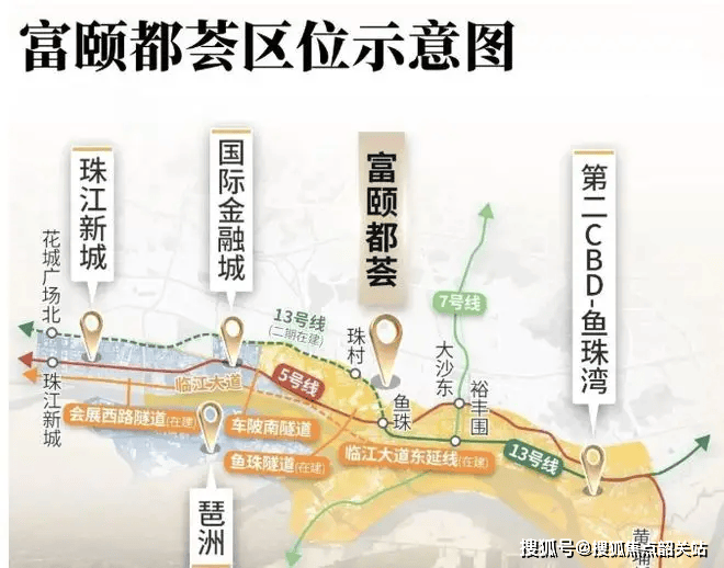 交通红利:地铁5号线(已通车)、7号线二期(2023年通车)、13号线(二期在建)形成“三轨交汇”,从富颐华庭到珠江新城仅需25分钟车程(实测数据),到琶洲18分钟(直线距离约8公里)。