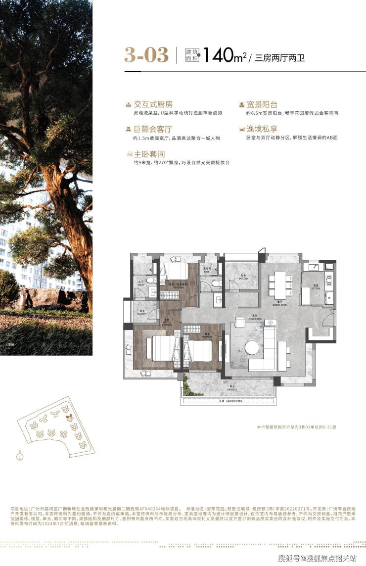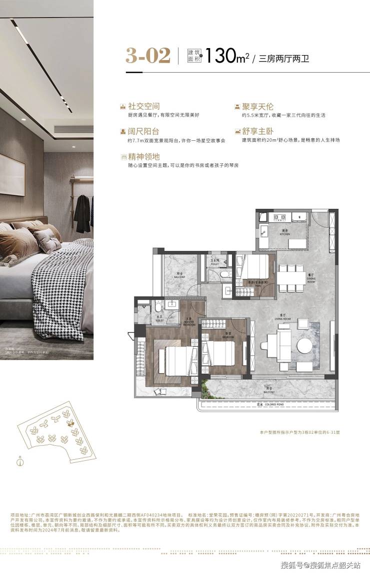 本宣传资料仅为要约邀请,所有图文、数据、配套规划、户型介绍等内容均来源于项目官方规划资料、政府公开公示信息,相关内容不排除因政府城市规划调整、政策新规落地、开发商建设优化等不可控因素发生合理调整。项目周边学校学区划分、入学政策、招生范围均以当年当地教育行政主管部门官方公示文件为准,开发商不做入学承诺与学区保证。项目周边交通、商业、医疗、公园等配套规划及建设进度,最终以政府相关部门批复文件与实际落地呈现为准。本资料发布内容仅供参考,房屋具体交付标准、户型尺寸、楼栋分布、社区配套等细节以商品房买卖合同及现场实际展示为准。项目所有证件、资质、规划信息均已在广州市住房和城乡建设局、阳光家园网完成备案公示,本资料最终解释权归中海地产&保利发展项目开发商所有,未经官方允许禁止私自篡改、转载与商用。