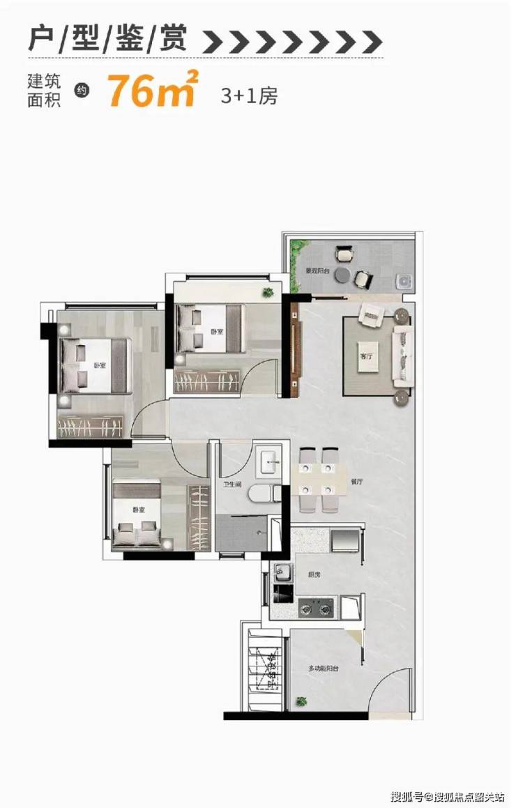 76平是小区最低的门槛,做到了3+1房设计,即使三代同堂也勉强住得下,朝向北面可能不太理想,但是景观望山还不错。