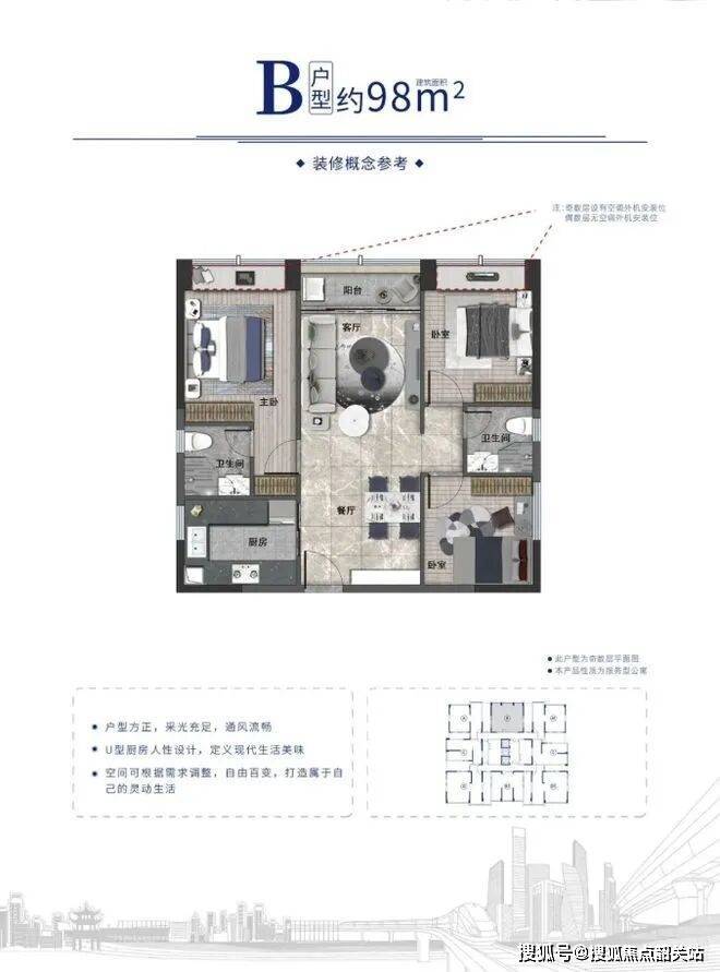 项目推出建面约 85 - 125㎡的实用三四房,户型设计科学合理。85㎡户型方正实用,空间布局紧凑,对于刚需购房者而言,是经济实惠且功能齐全的选择,通风采光良好,能满足基本生活需求。98㎡和 103㎡户型在空间尺度上有所提升,房间更加宽敞舒适,无论是起居还是收纳空间都更为充裕,为家庭生活提供更多便利。125㎡户型则尽显奢阔,功能分区明确,可满足家庭成员的不同需求,为追求品质生活的人士打造专属的舒适空间。此外,项目还提供住宅式产权公寓,满足不同人群的居住与投资需求。