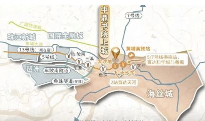 中鼎书院上城坐落在港湾路和香秀路交汇处,距离地铁5号线大沙地站约980米,步行大约需要14分钟。三期加推的珺翎府距离地铁口更近一些,增加了出行的便捷性。通过5号线无需换乘即可直达金融城和珠江新城,自驾出行也十分方便,周边有广园快速、黄埔大道等多条干线,为居民提供了多种出行选择。