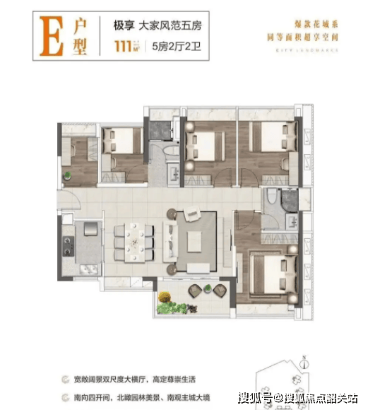 5. 建面约111㎡五房两卫:大家庭的“改善之选”