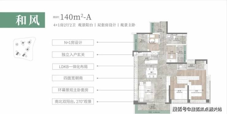 建面约140㎡的户型,把居住空间进一步拓展,甚至连主卧均做到了三面采光,将主卧的观景角度扩大到了270°。